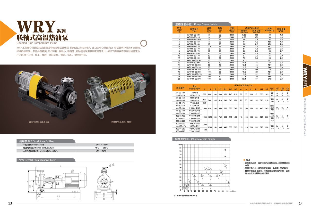 公司产品包括:RGP系列大流量耐高温离心泵、RGZ系列高流速耐高温离心泵、WM系列标准型耐温高旋涡泵、WD系列精致型高扬程耐高温漩涡泵、ISW系列冷水循环泵、WRY系列联轴式高温泵。其中,WM系列、WD系列和WF系列热水泵耐温120℃~150℃,热油泵耐温100℃~200℃;RGP系列和RGZ系列的热水泵耐温120℃~180℃、热油泵耐温200℃~250℃;WRY系列联轴泵zui高耐温350℃。